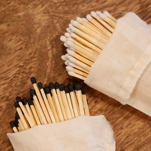 Each refill bag contains 60 long matches, perfect for our custom candles! Box measures ~ 4.5" x 2.5" choose from black or white match tips to match your fancy matches ;)