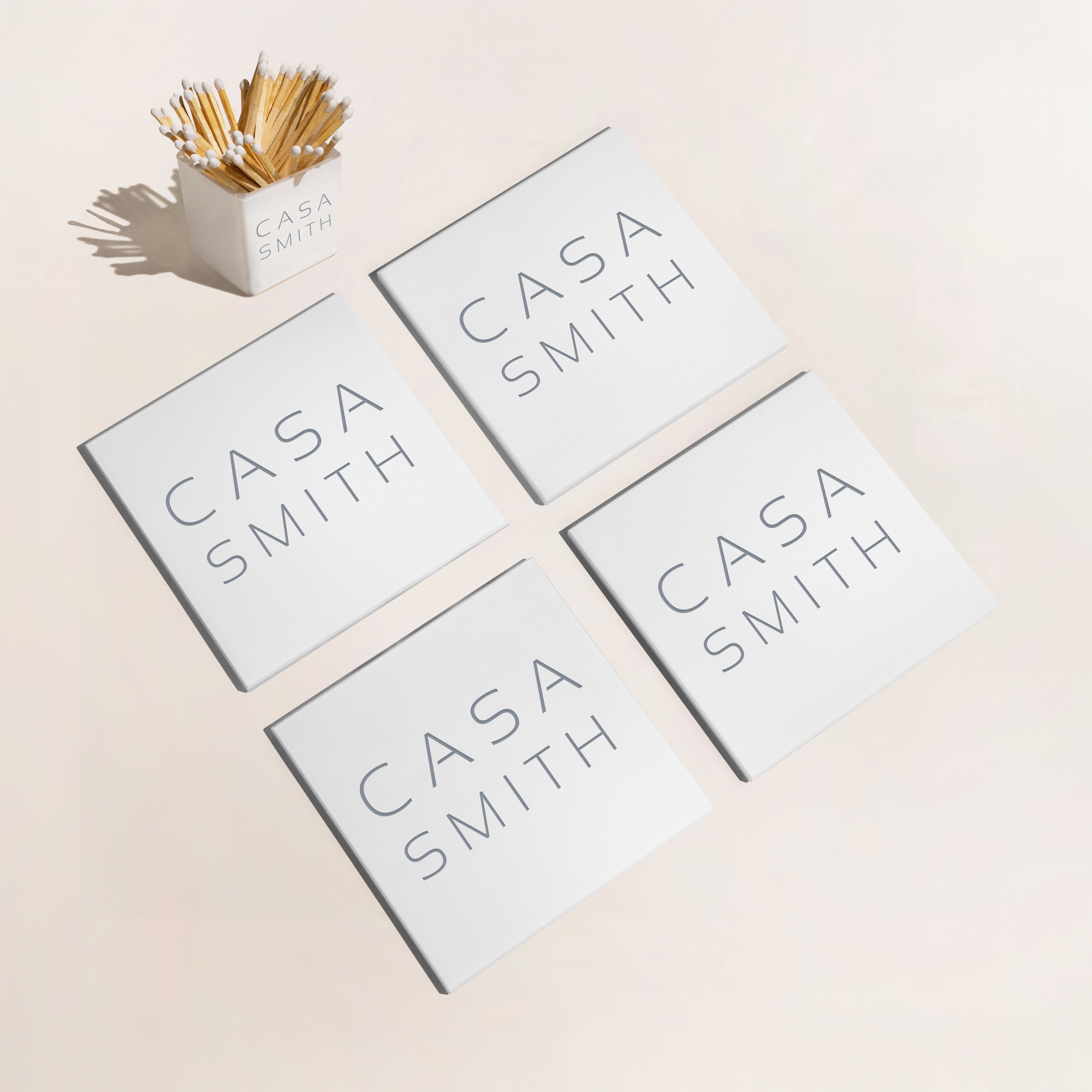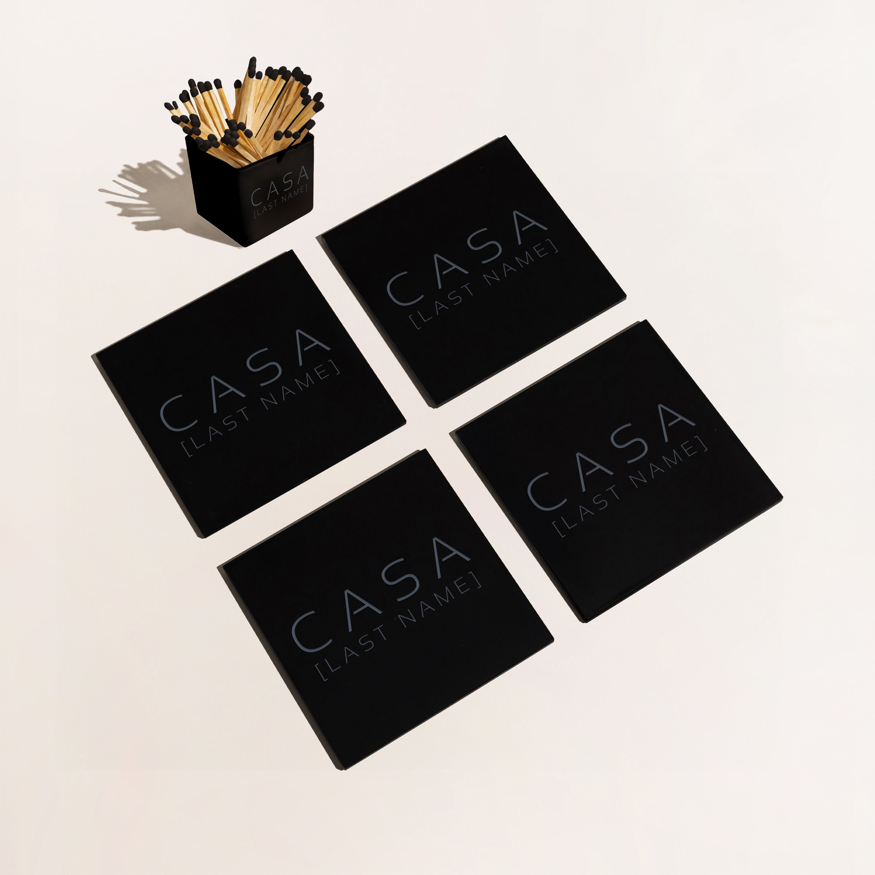- Note: The same last name will be used on both the matches and coasters. 'CASA' means 'house' in Spanish.