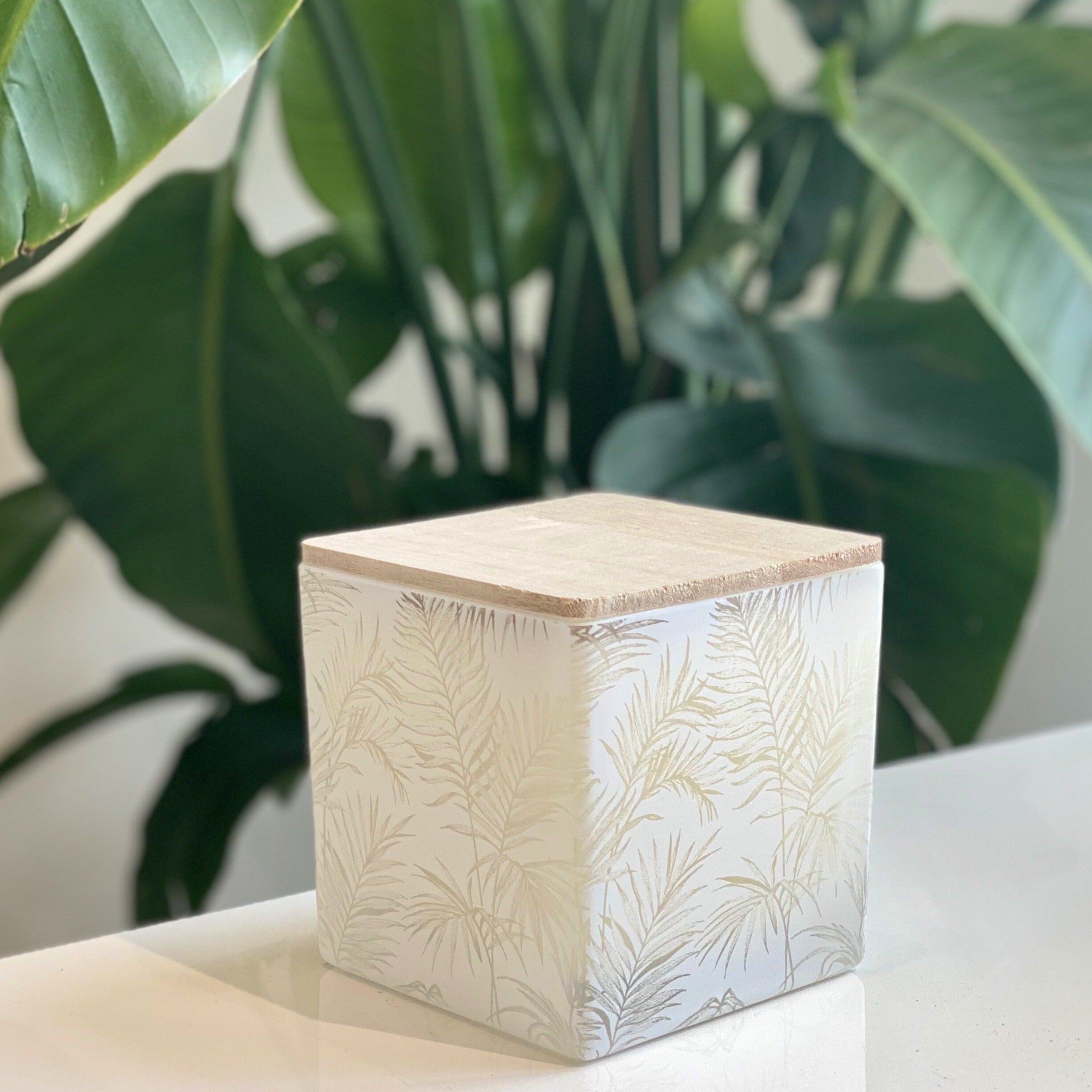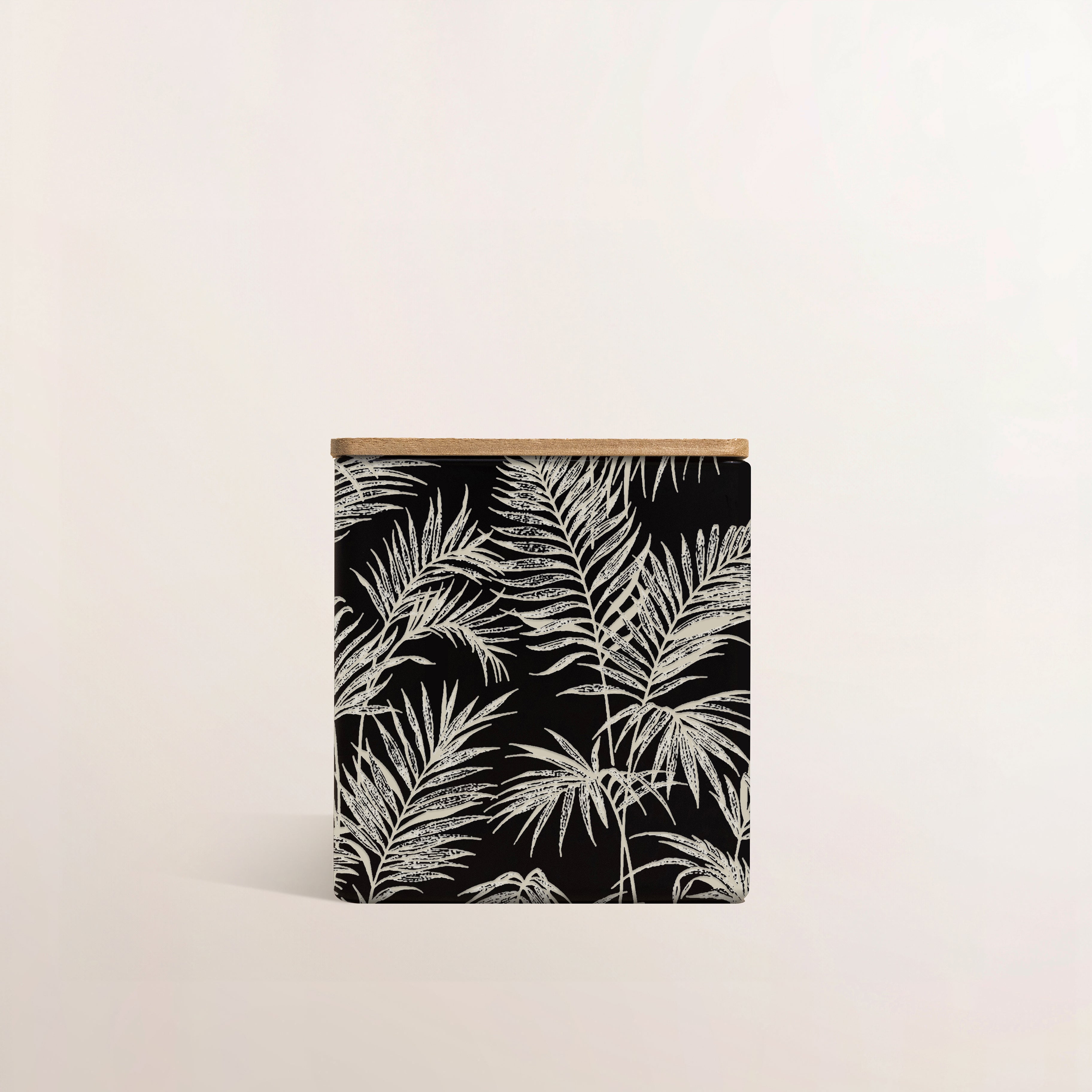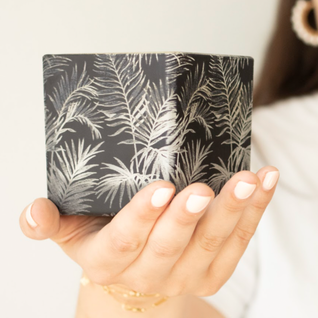 The engraved palm pattern wraps around the entire glass jar, creating a bold, layered look that feels both wild and elevated. No stickers here — just intricate, custom engraving that glows softly as the 100% soy wax burns down.
