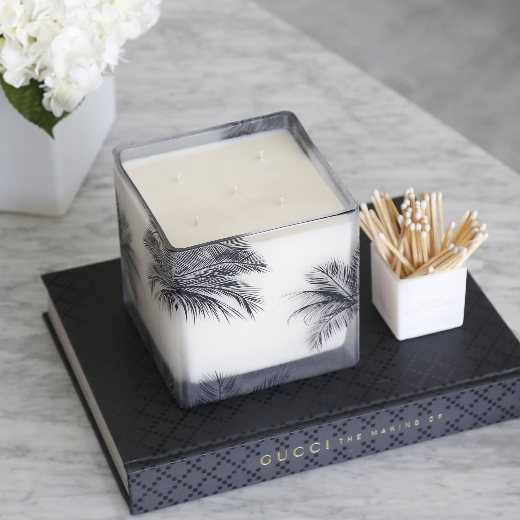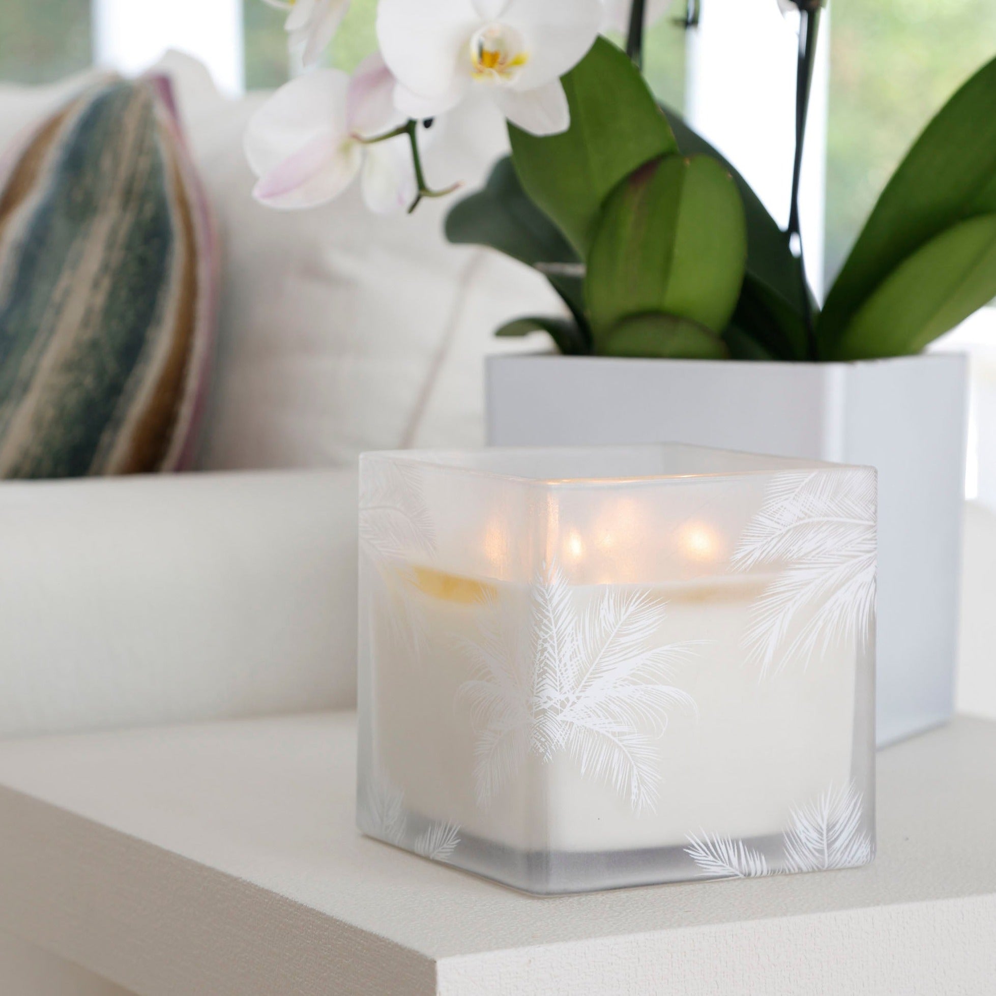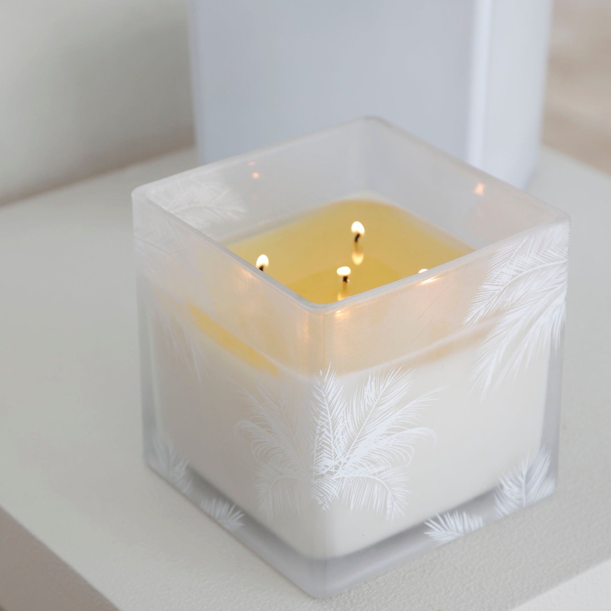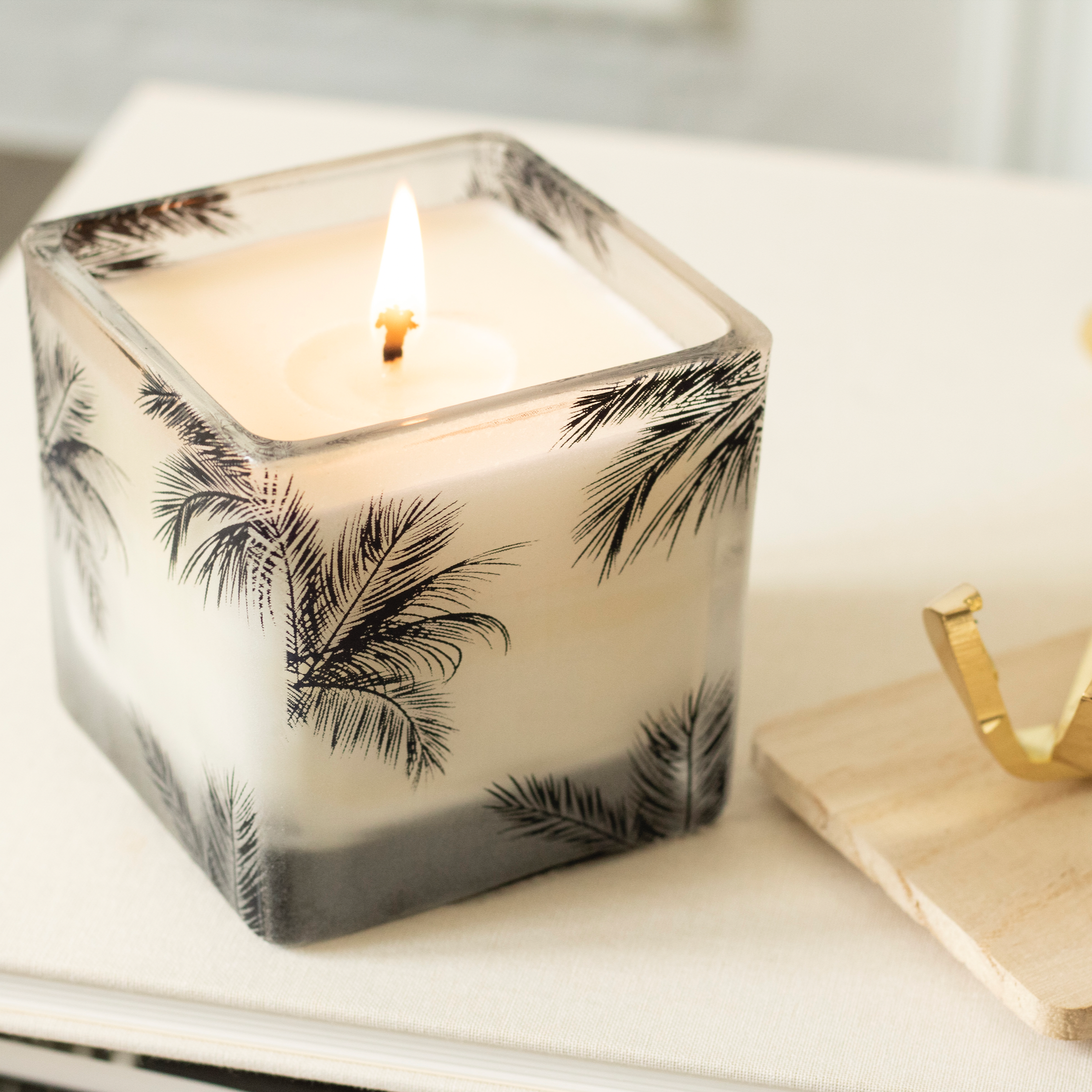 This design was born from those picture-perfect days when the sun is shining and palm trees cast soft reflections on the water. We captured that moment — light, shadow, and calm — and turned it into a candle.
