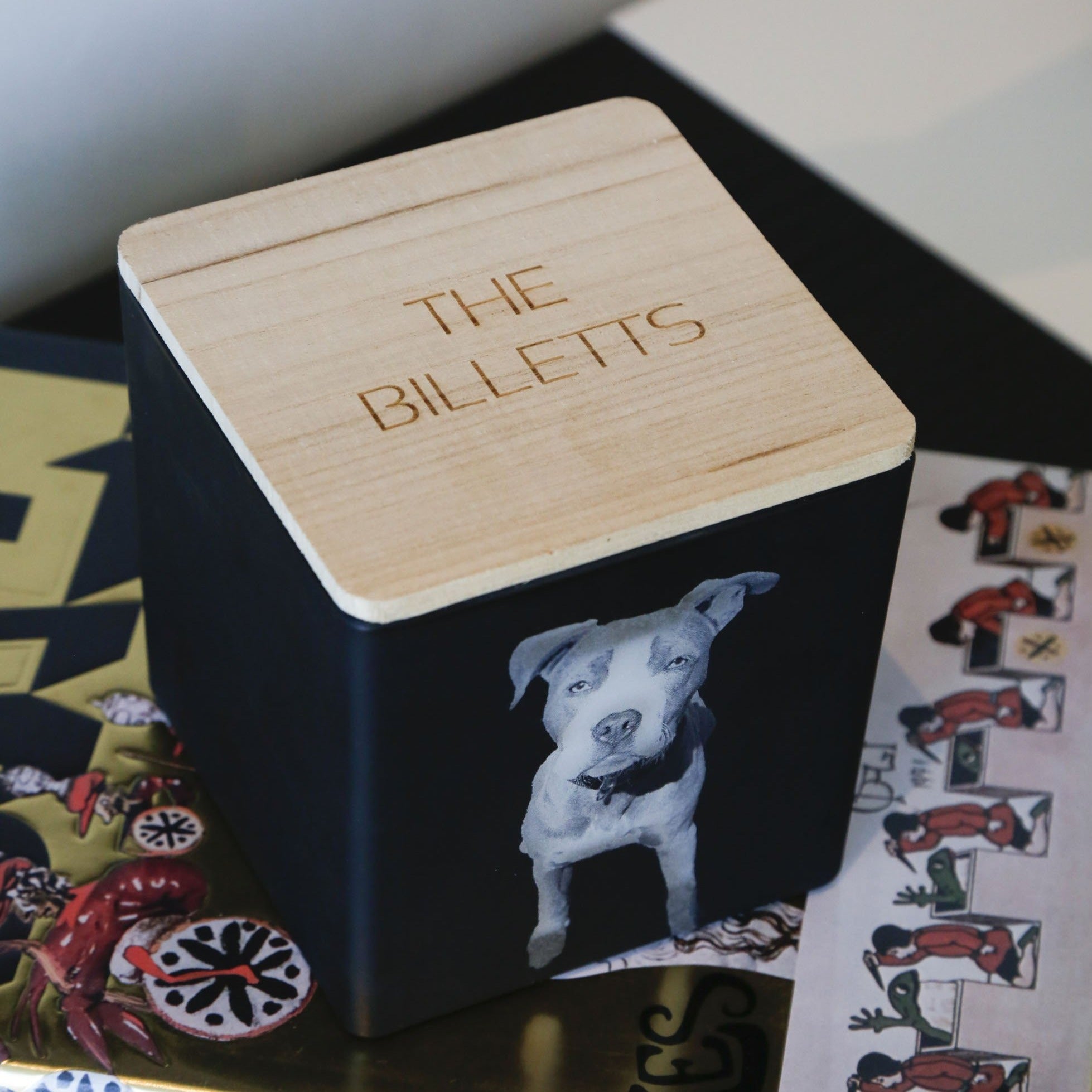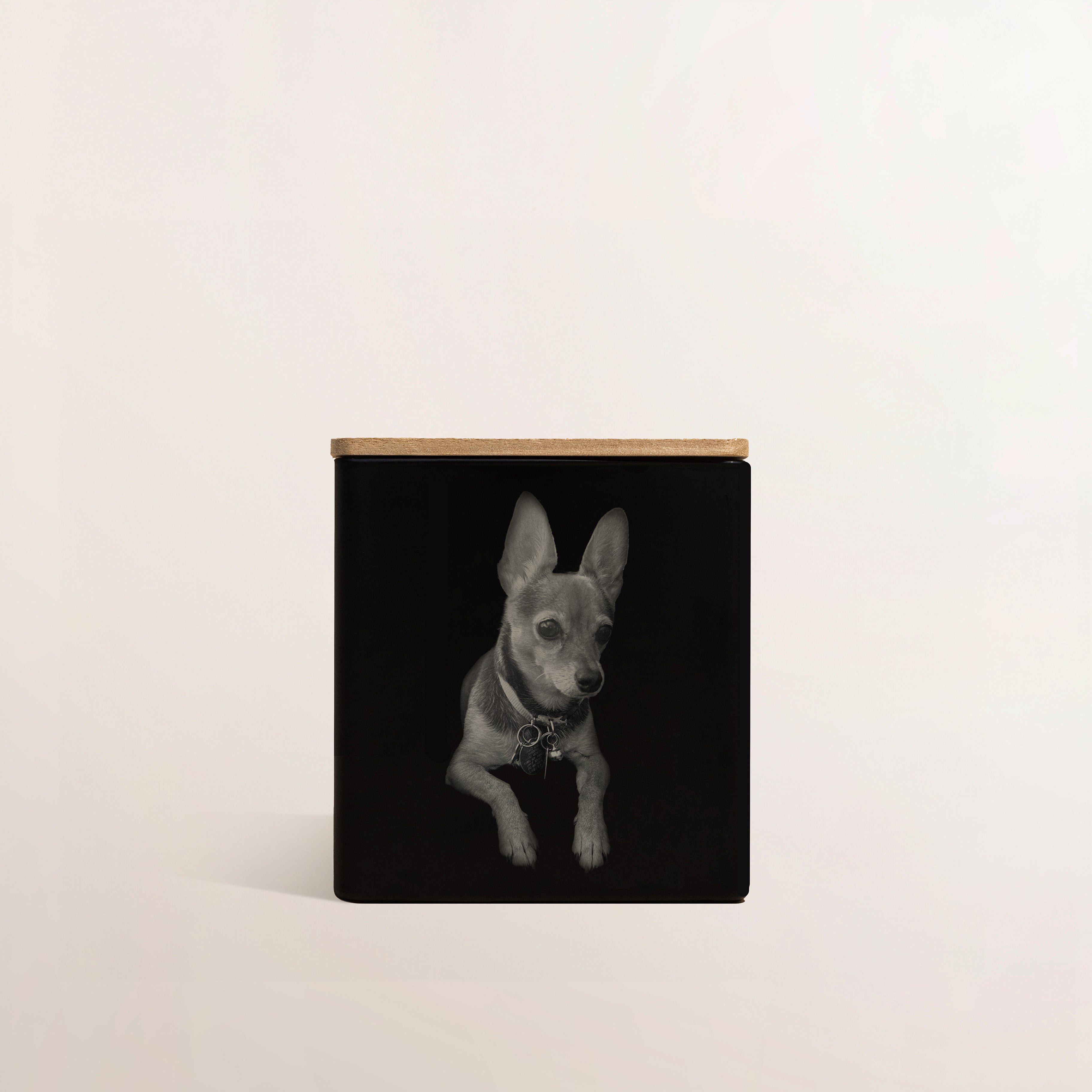 Upload a high-res close-up of your pet, and we’ll engrave their photo onto our sleek black glass jar. Want the background removed (grass, couch, etc.)? Just select the “remove background” option.