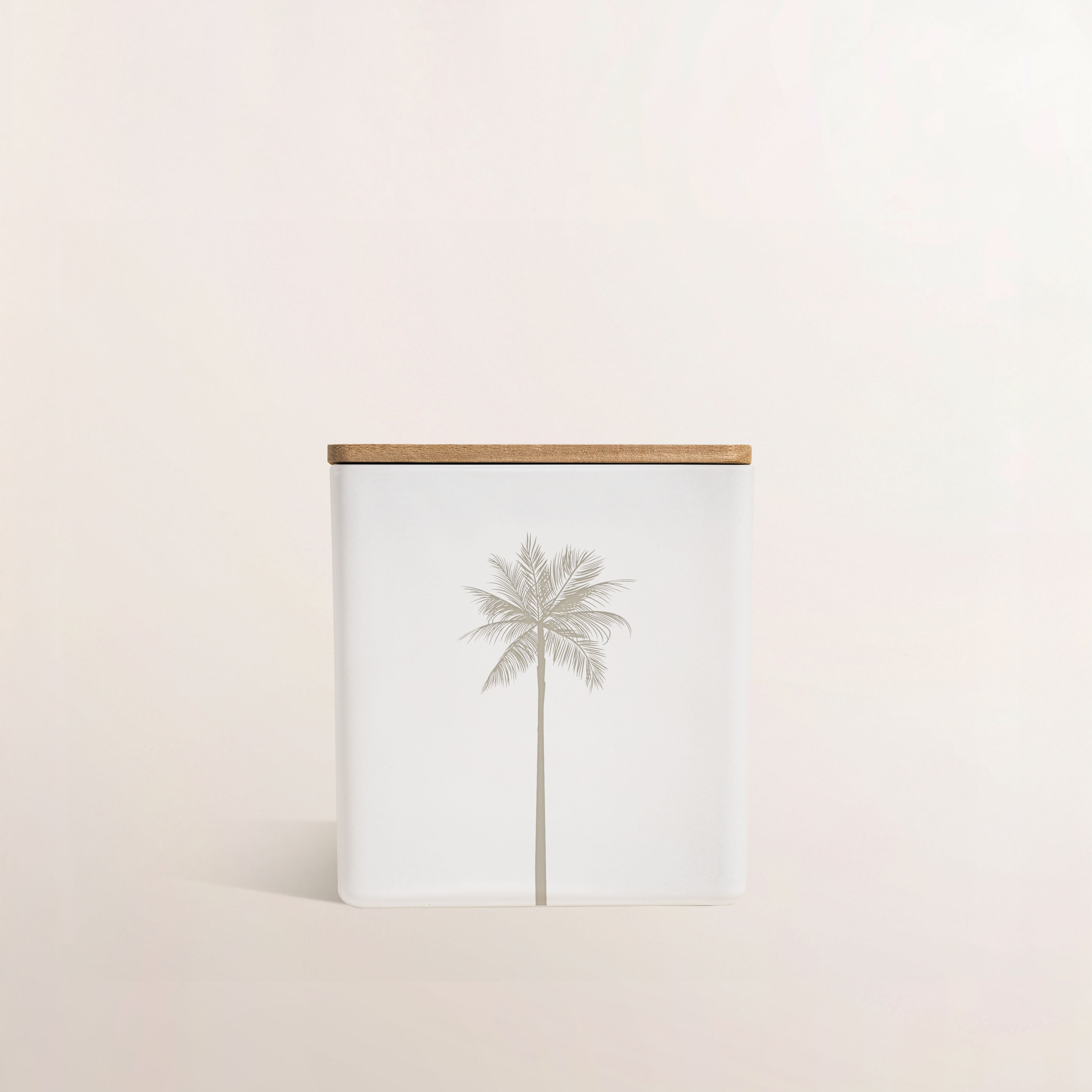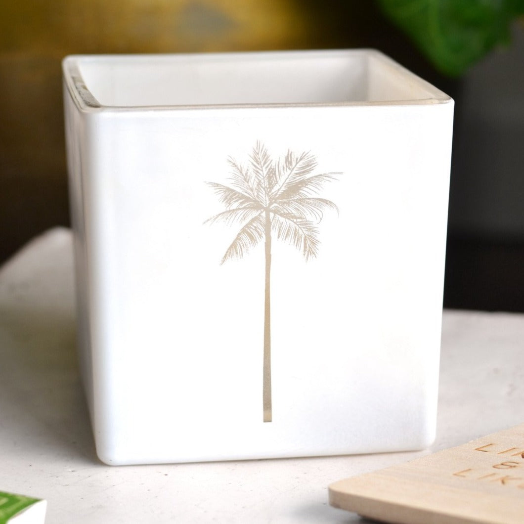 Reminisce on carefree summer days with this simple, stunning design — a single palm tree engraved directly onto the front of the glass jar.