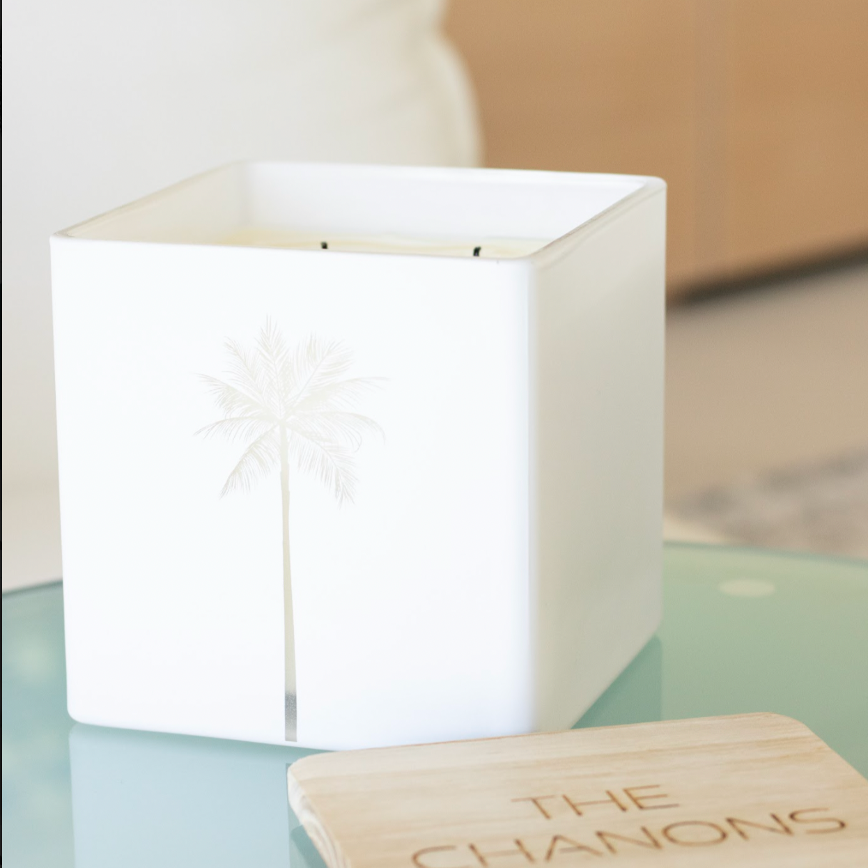 As the 100% premium soy wax burns down, the palm tree design begins to glow through the glass for an extra relaxing effect.